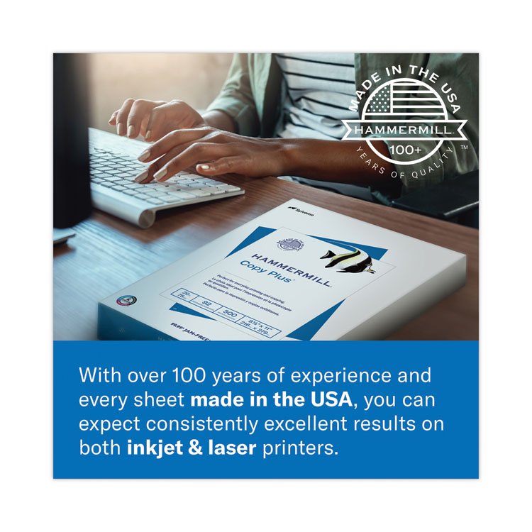 Hammermill Copy Plus Print Paper, 92 Bright, 20 lb Bond Weight, 8.5 x 14, White, 500/Ream (HAM105015)