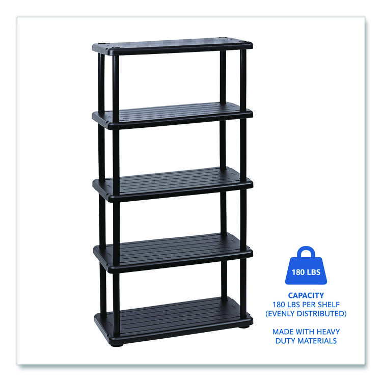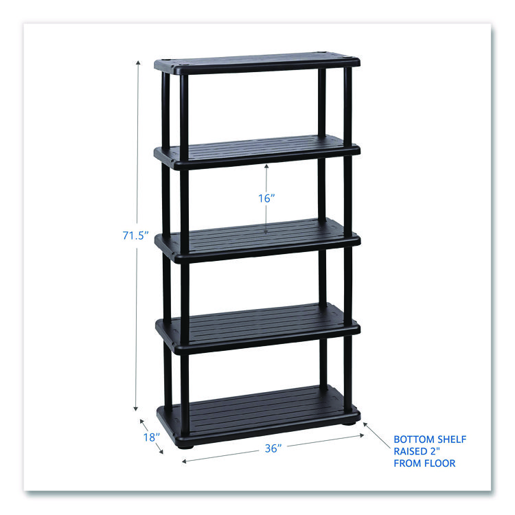 Iceberg Rough n Ready Open Storage System, Five-Shelf, Blow-Molded HDPE, 36w x 18d x 74h, Black (ICE20851)