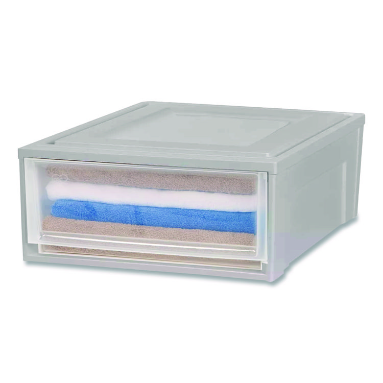 IRIS Stackable Storage Drawer, 5.5 gal, 15.7″ x 19.7″ x 6.5″, Gray/Translucent Frost (IRS170441)