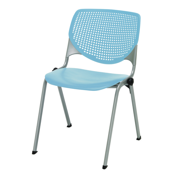 KFI Studios Pedestal Table with Four Sky Blue Kool Series Chairs, Round, 36″ Dia x 29h, Studio Teak (KFI811774036900)