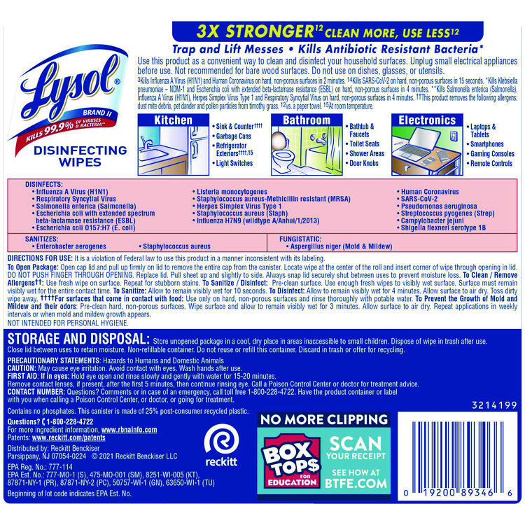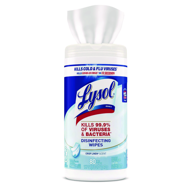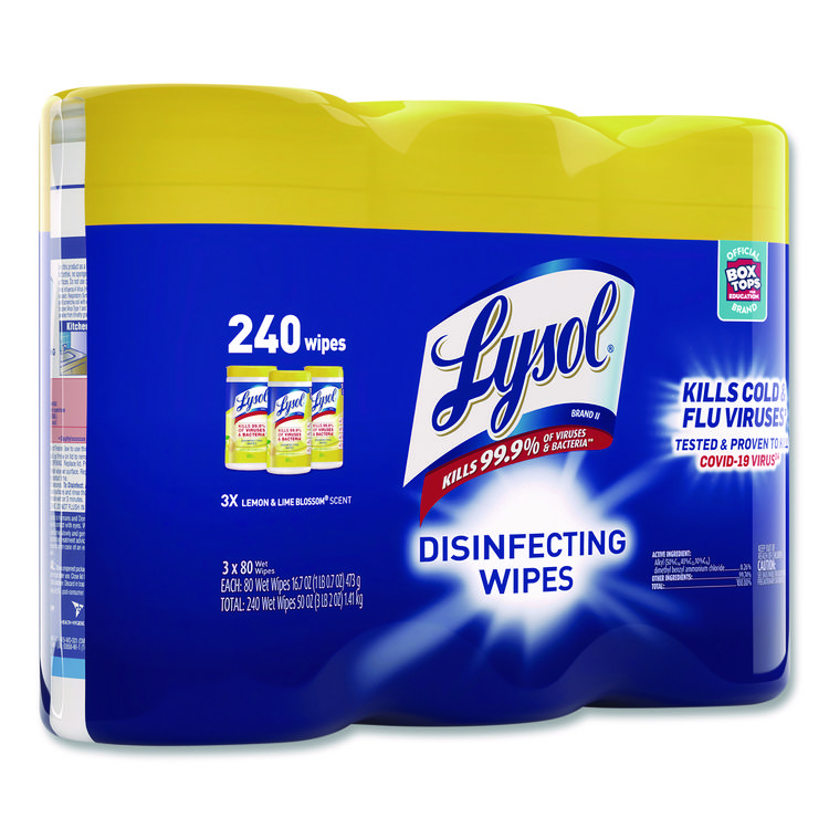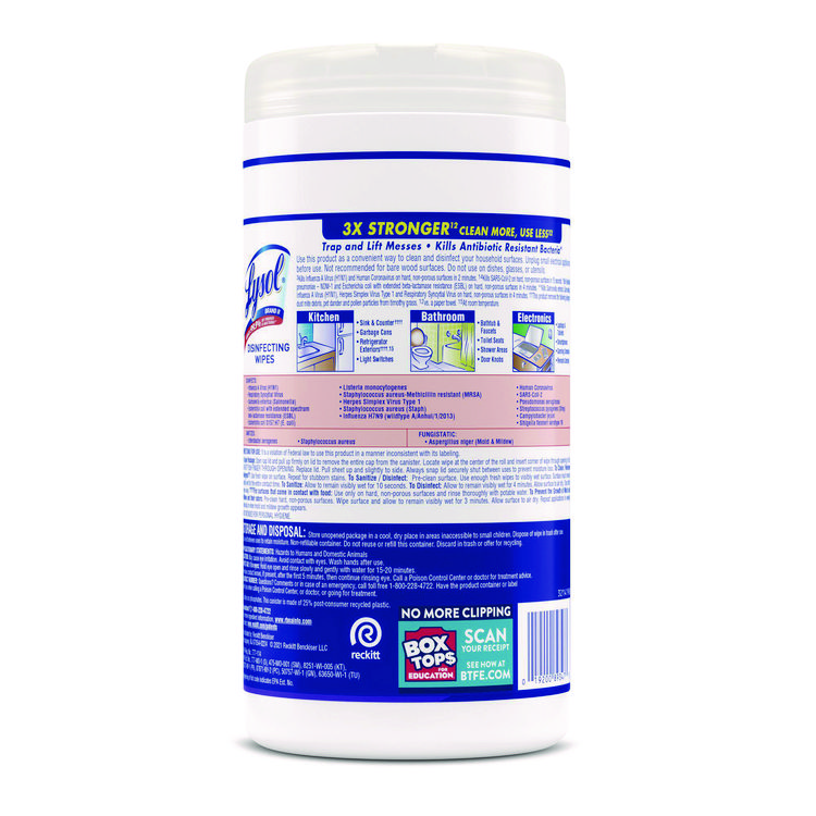LYSOL Brand Disinfecting Wipes, 1-Ply, 7 x 7.25, Lemon and Lime Blossom, White, 35 Wipes/Canister (RAC81145)