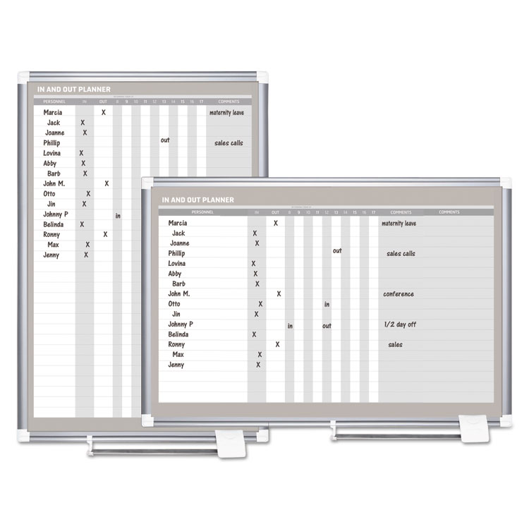 MasterVision In-Out Magnetic Dry Erase Board, 30-Person Tracking, 24″ x 36″, White Surface, Satin Aluminum Frame (BVCGA02109830)