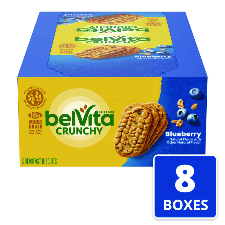 Nabisco belVita Breakfast Biscuits, 1.76 oz Pack, Blueberry, 8 Packs/Box, 8 Boxes/Carton (CDB02908)
