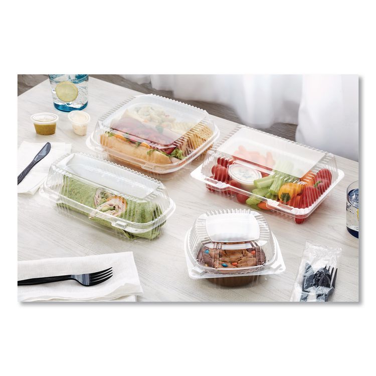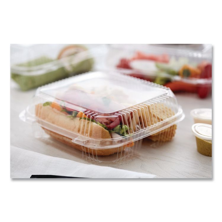 Pactiv Evergreen Plastic Hinged Lid Sandwich Container, 3.25 x 6.5 x 3, Clear, 85/Pack, 3 Packs/Carton (PCTY11334)