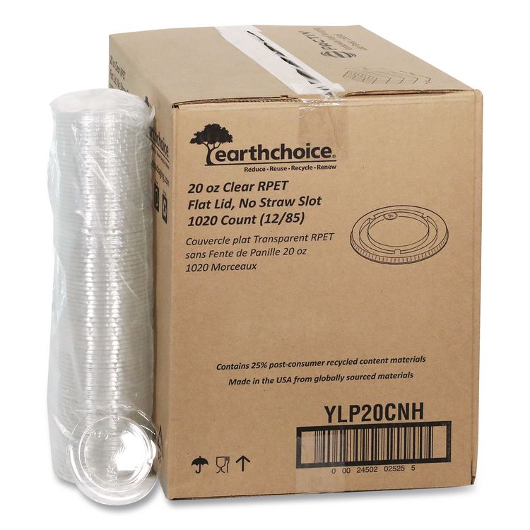 Pactiv Evergreen EarthChoice Strawless RPET Lid, Flat Lid, Fits 9 oz to 20 oz “A” Cups, Plastic, Clear, 1,020/Carton (PCTYLP20CNH)