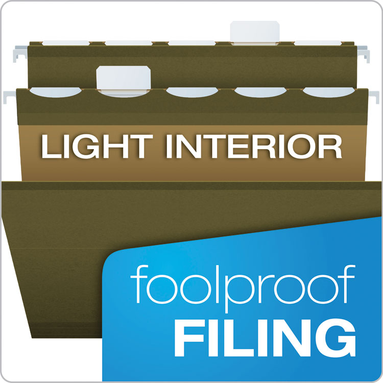 Pendaflex Ready-Tab Reinforced Hanging File Folders, Letter Size, 1/5-Cut Tabs, Standard Green, 25/Box (PFX42590)