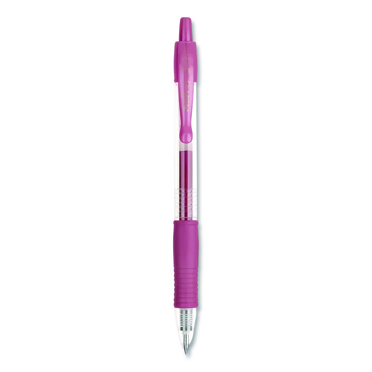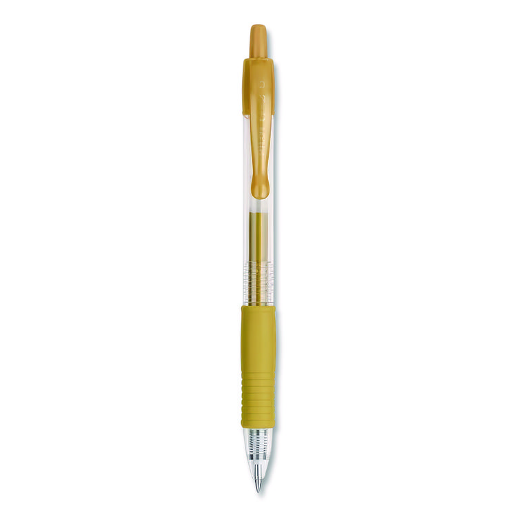 Pilot G2 Metallics Gel Pen has smooth, shiny ink that looks great for special projects or everyday writing. It has a comfortable rubber grip and a fine 0.7 mm tip. The set includes 8 pens with different ink and barrel colors and is retractable for easy use.