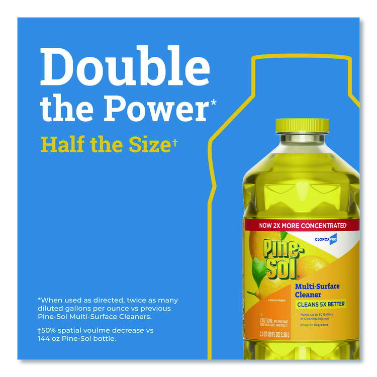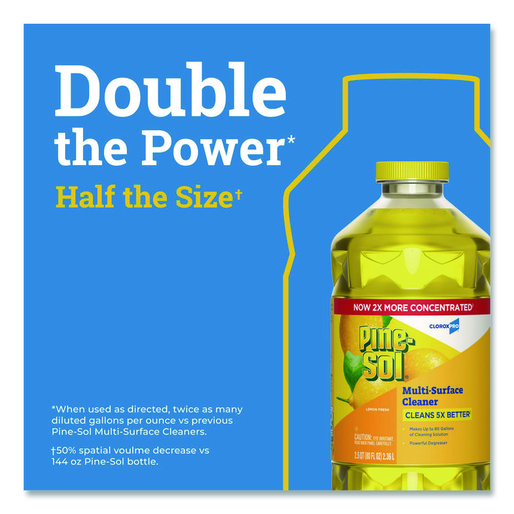 Pine-Sol CloroxPro Multi-Surface Cleaner Concentrated, Lemon Fresh Scent, 80 oz Bottle (CLO60607EA)