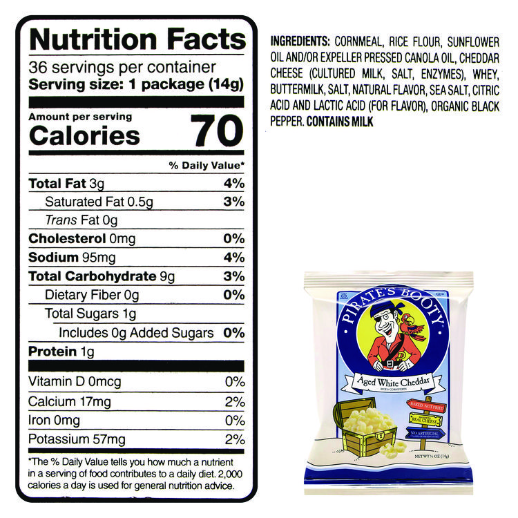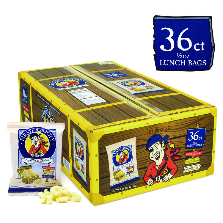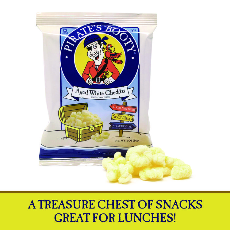 Pirate’s Booty Natural Aged White Cheddar Baked Corn Puffs, 0.5 oz Bag, 36/Box, 2 Boxes/Carton (GRR60004090)