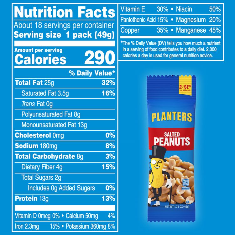 Planters Salted Peanuts, 1 oz Pouch, 48/Box, 2 Boxes/Carton (GRR60004074)