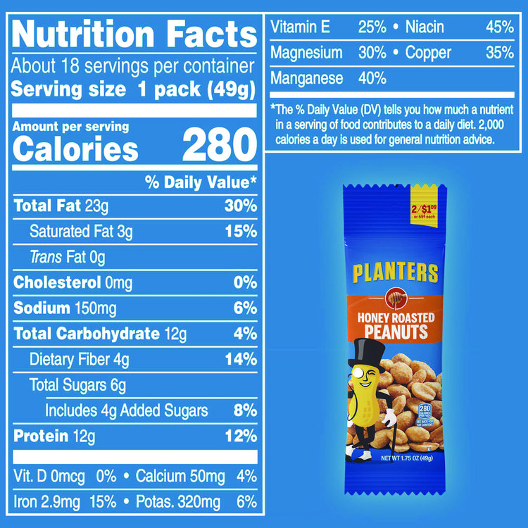 Planters Salted Peanuts, 1.75 oz Pack, 18 Packs/Box (GRR20900627)
