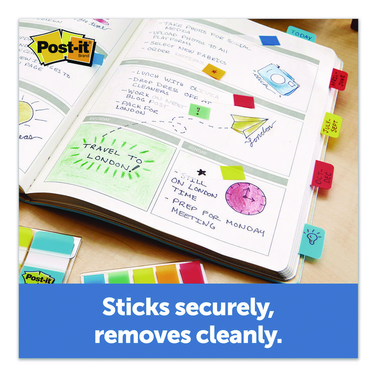 Post-it Tabs Solid Color Tabs, 1/5-Cut, Assorted Colors, 2″ Wide, 30/Pack (MMM686ROYGB)