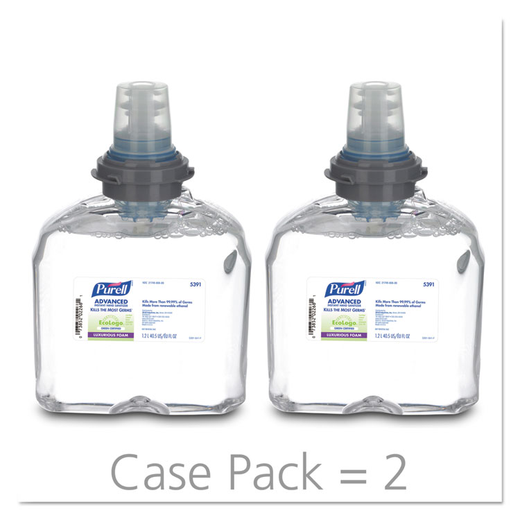 PURELL Advanced Hand Sanitizer Green Certified TFX Refill, Foam, 1,200 mL, Fragrance-Free, 2/Carton (GOJ539102CT)