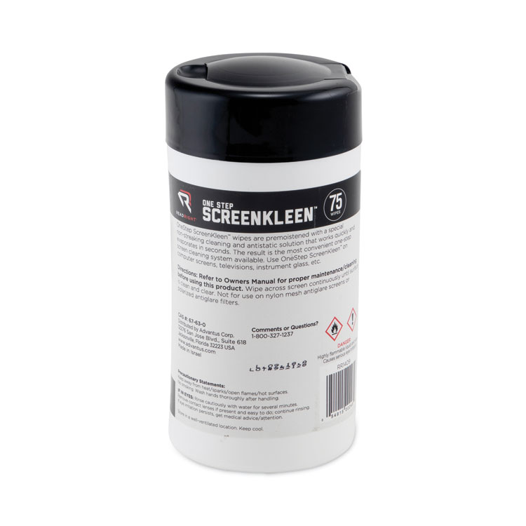 Read Right OneStep CRT ScreenKleen Cleaner Wet Wipes, Cloth, 5.25 x 5.75, Unscented, 75/Tub (REARR1409)
