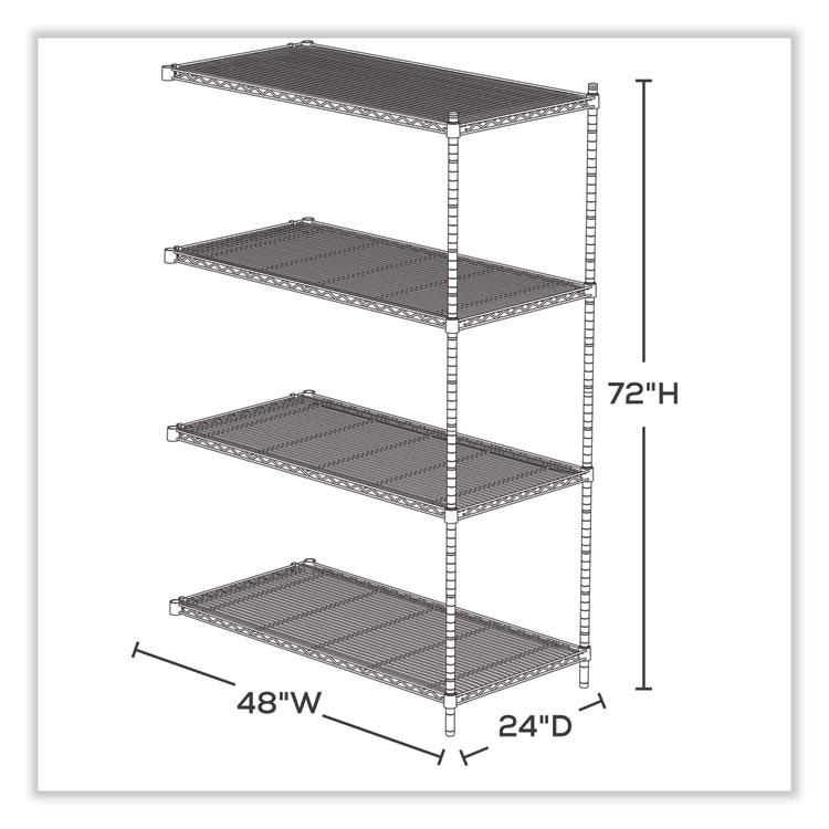 Safco Industrial Wire Shelving, Four-Shelf, 48w x 24d x 72h, Black (SAF5294BL)