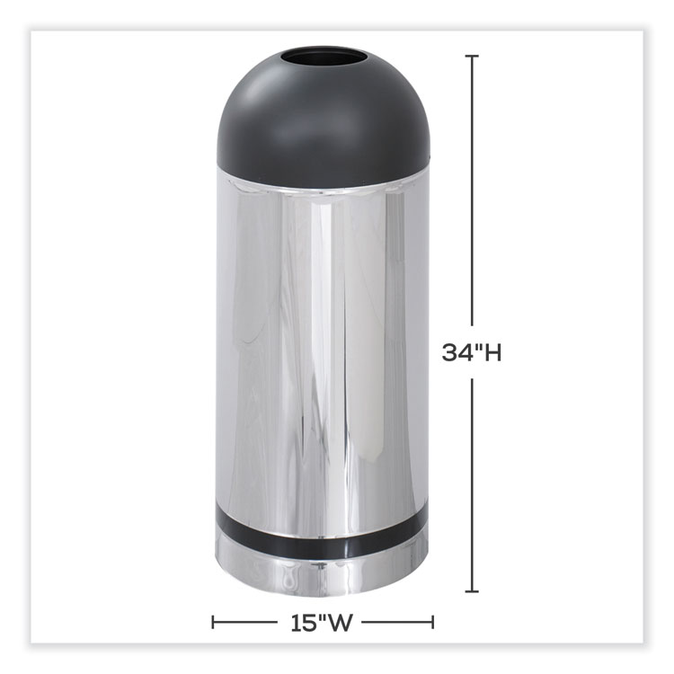 Safco Waste Receptacle, 15 gal, Steel, Stainless Steel/Black (SAF9871)