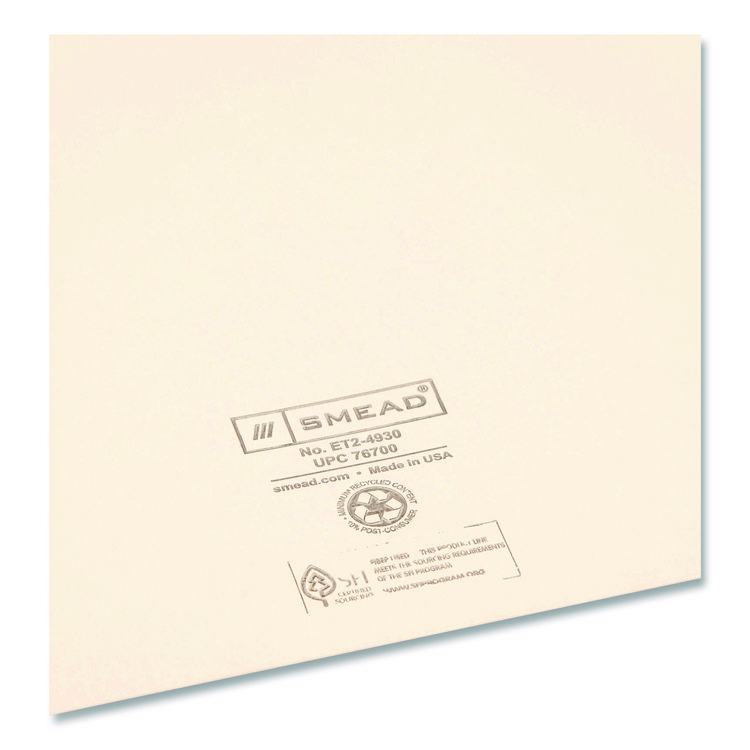 Smead 100% Recycled Top Tab File Jackets, Straight Tab, Legal Size, Manila, 50/Box (SMD75607)