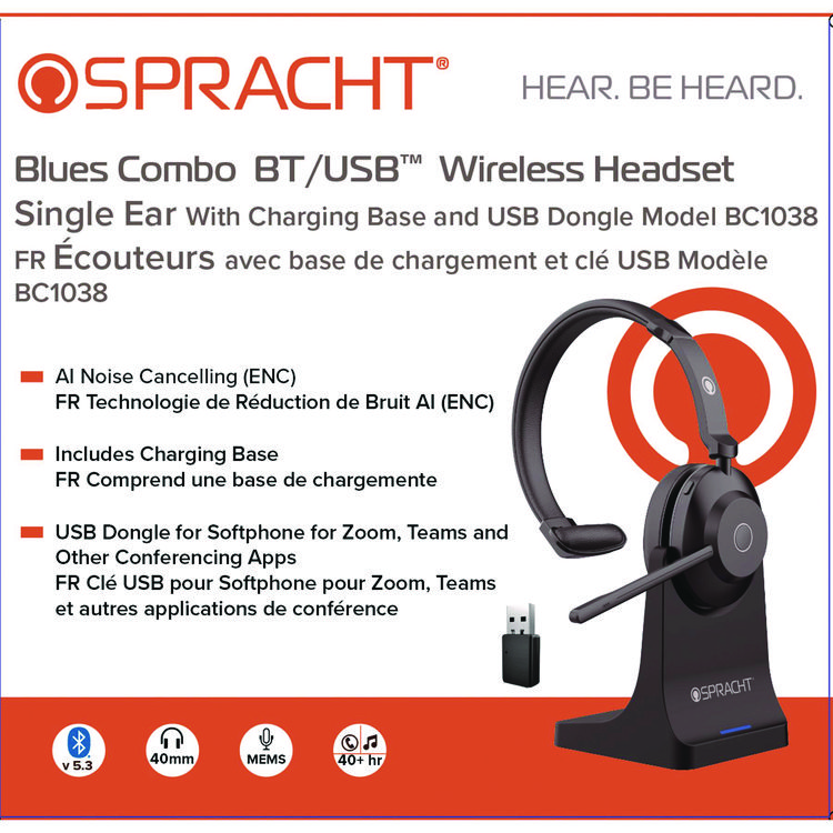Spracht ZuM Monaural Over-The-Ear Bluetooth Headset (SPTHSOTEQ)