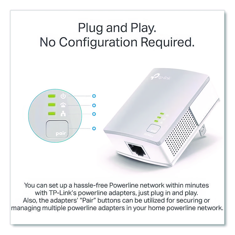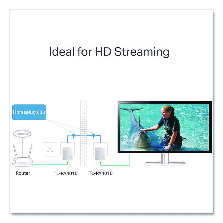 TP-Link TL-PA4010KIT AV600 Powerline Starter Kit, 1 Port (TPLTLPA4010KIT)
