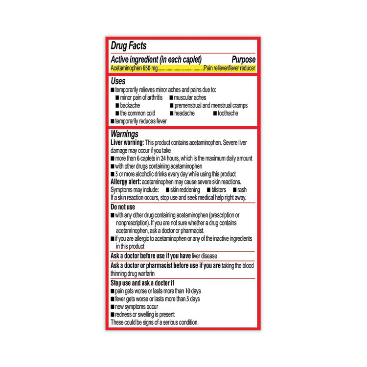 Tylenol Acetaminophen, 500mg, Extra Strength Caplets, Refill, 2 /Packet, 30 Packets/Box (LIL97477)