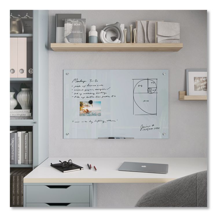 U Brands Floating Glass Dry Erase Board, 35 x 23, White (UBR3975U0001)