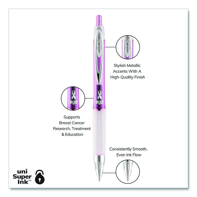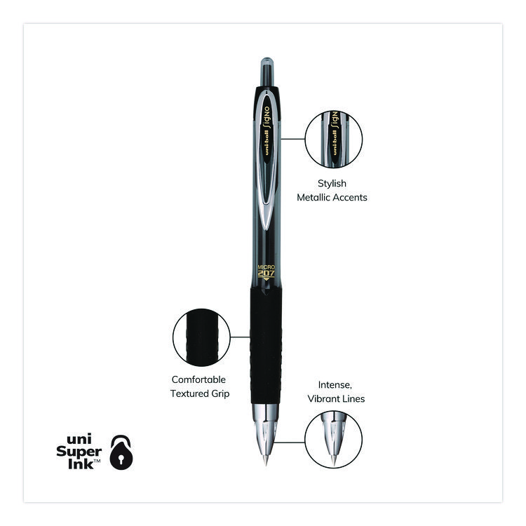 uniball 207 Ultra Micro Gel Pen, Retractable, Ultra-Micro 0.38 mm, Black Ink, Clear/Black Barrel (UBC1790922)