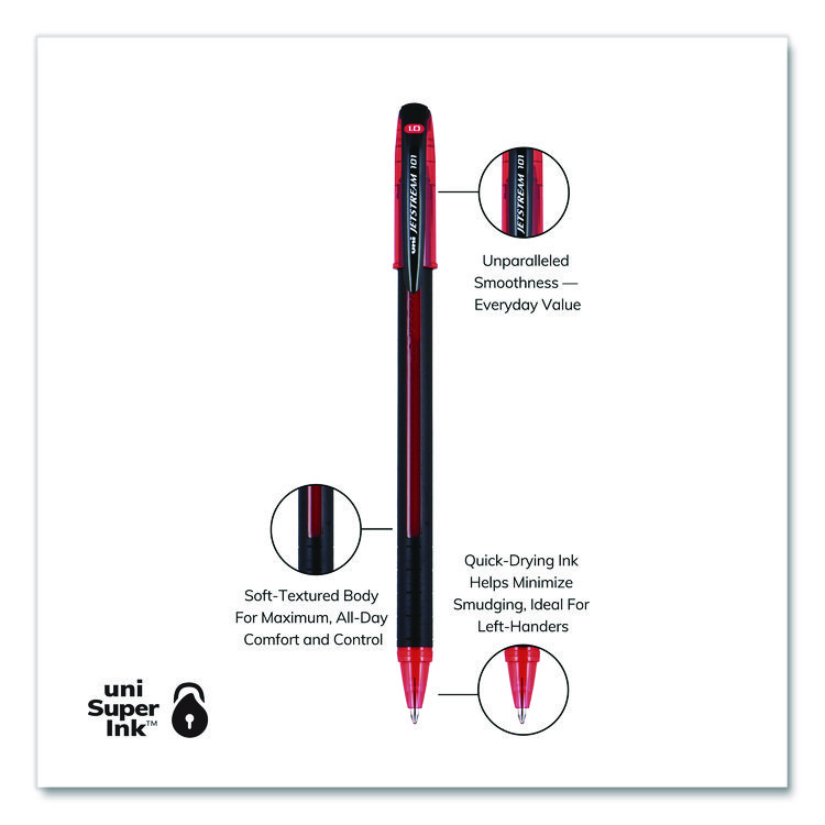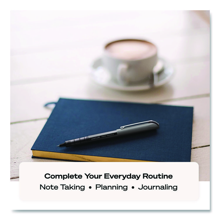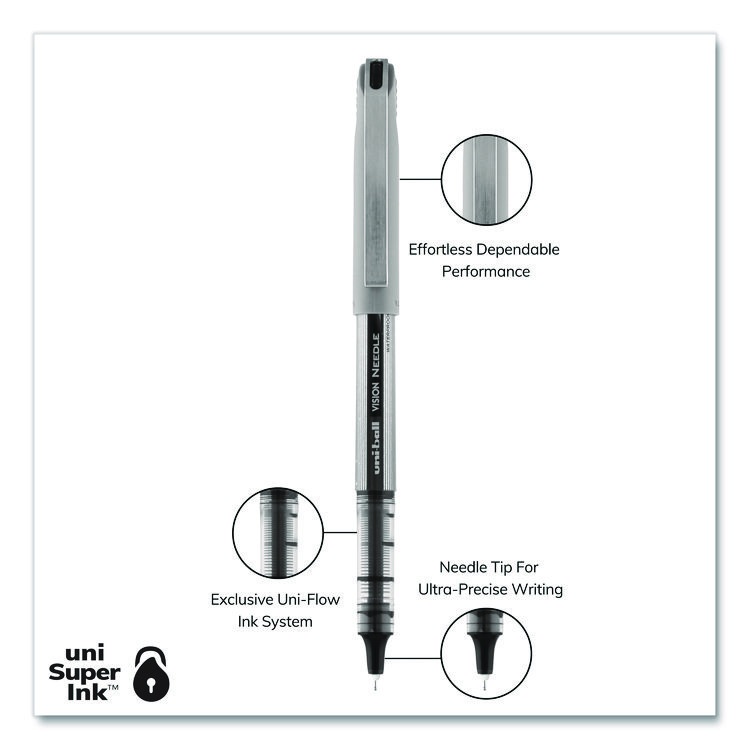 uniball VISION Needle Rollerball Pen, Stick, Fine 0.7 mm, Black Ink, Gray/Clear/Black Barrel, Dozen (UBC1734903)