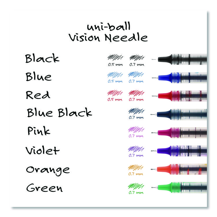 uniball VISION Needle Rollerball Pen, Stick, Fine 0.7 mm, Assorted Ink and Barrel Colors, 8/Pack (UBC1734916)