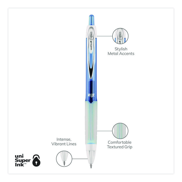 uniball Signo 207 Gel Pen, Retractable, Medium 0.7 mm, Assorted Ink and Barrel Colors, 8/Pack (UBC1739929)