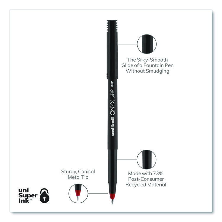uniball ONYX Rollerball Pen, Stick, Extra-Fine 0.5 mm, Red Ink, Black/Red Barrel, Dozen (UBC60042)