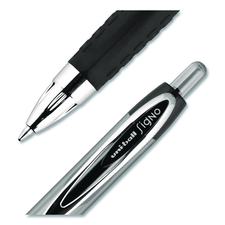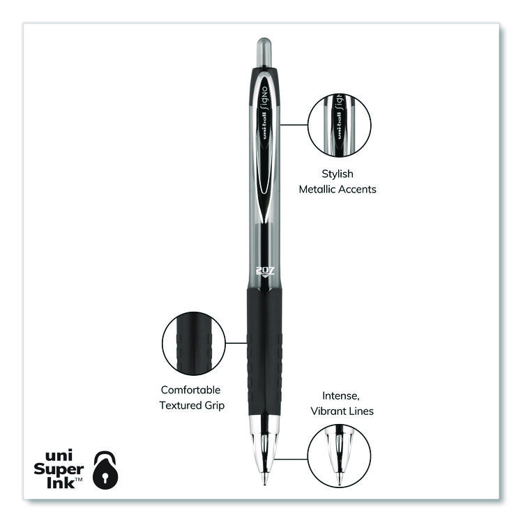 uniball Signo 207 Gel Pen, Retractable, Medium 0.7 mm, Black Ink, Smoke/Black Barrel, 4/Pack (UBC33960PP)