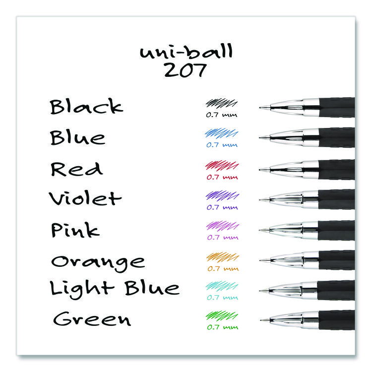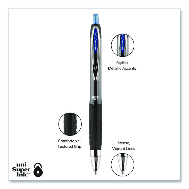 uniball Signo 207 Gel Pen, Retractable, Medium 0.7 mm, Blue Ink, Smoke/Black/Blue Barrel, 4/Pack (UBC45532PP)