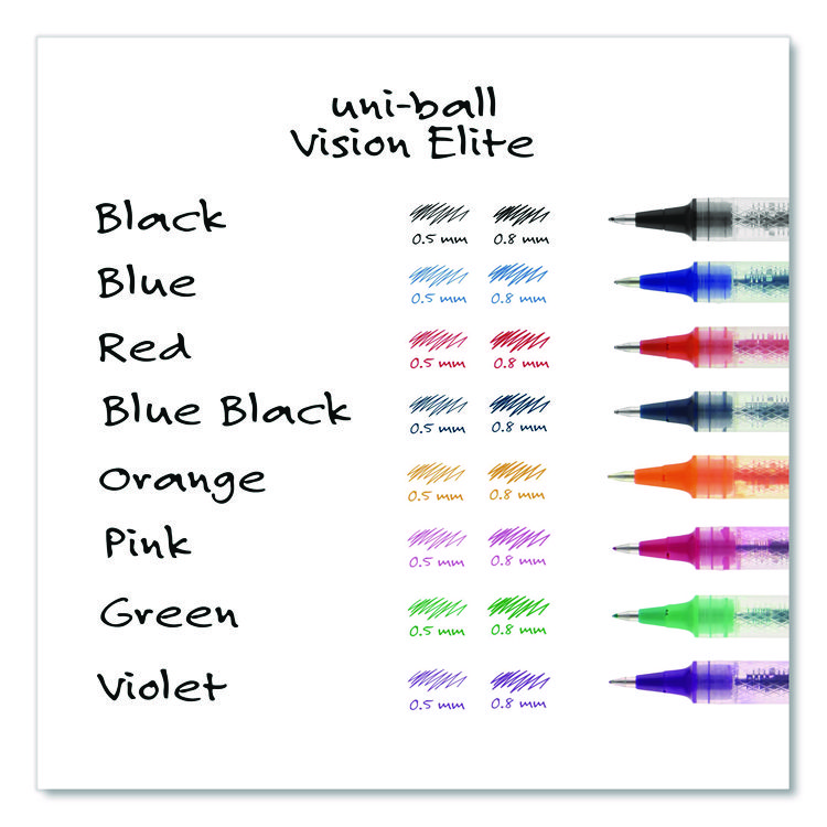 uniball VISION ELITE Hybrid Gel Pen, Stick, Fine 0.5 mm, Assorted Ink and Barrel Colors, 8/Pack (UBC58092PP)