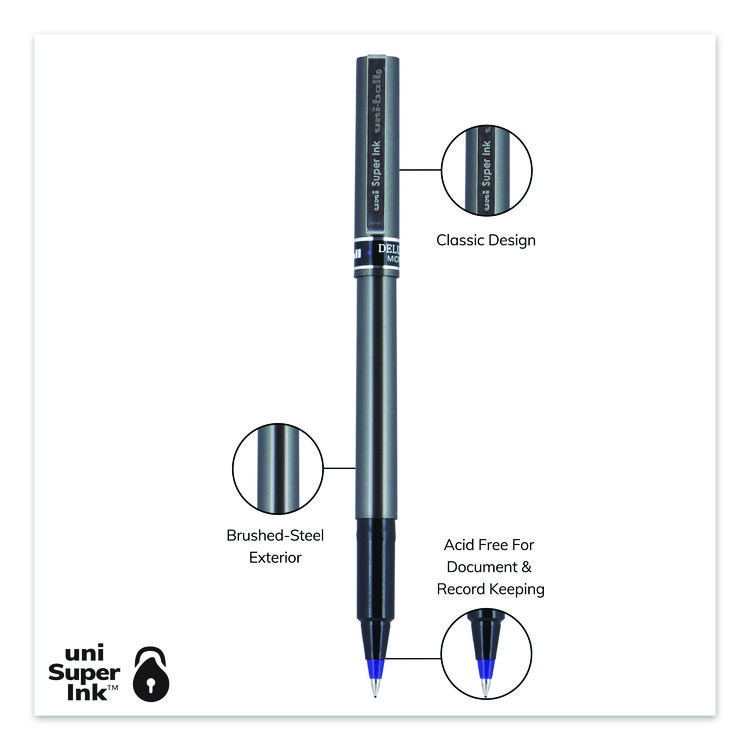 uniball Deluxe Roller Ball Pen, Stick, Fine 0.7 mm, Blue Ink, Champagne/Black/Blue Barrel, Dozen (UBC60053)