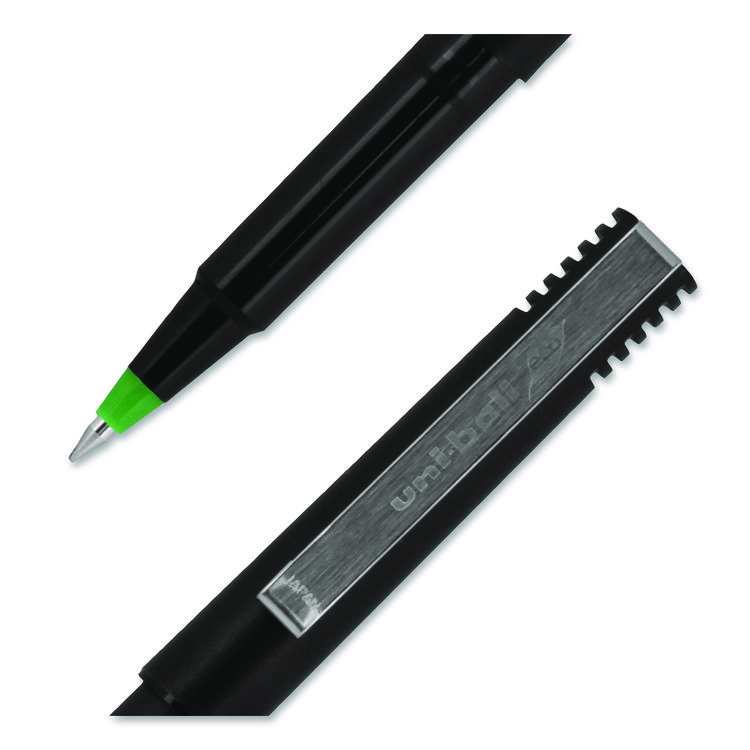 uniball Rollerball Pen, Stick, Extra-Fine 0.5 mm, Green Ink, Black/Green Barrel, Dozen (UBC60154)
