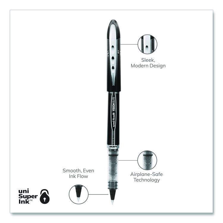 uniball VISION ELITE Hybrid Gel Pen, Stick, Extra-Fine 0.5 mm, Black Ink, Black/Clear Barrel (UBC69000)