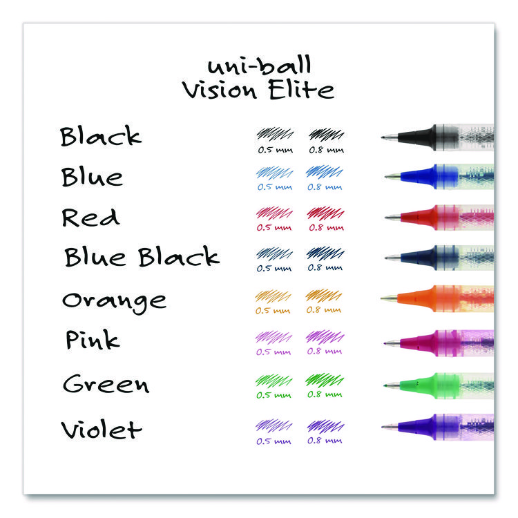 uniball VISION ELITE Hybrid Gel Pen, Stick, Extra-Fine 0.5 mm, Blue Ink, Black/Blue/Clear Barrel (UBC69021)