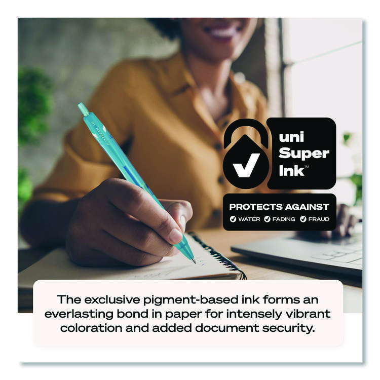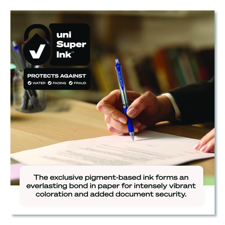 uniball Signo Gel Pen, Retractable, Medium 0.7 mm, Blue Ink, Silver/Blue Barrel, Dozen (UBC65941)