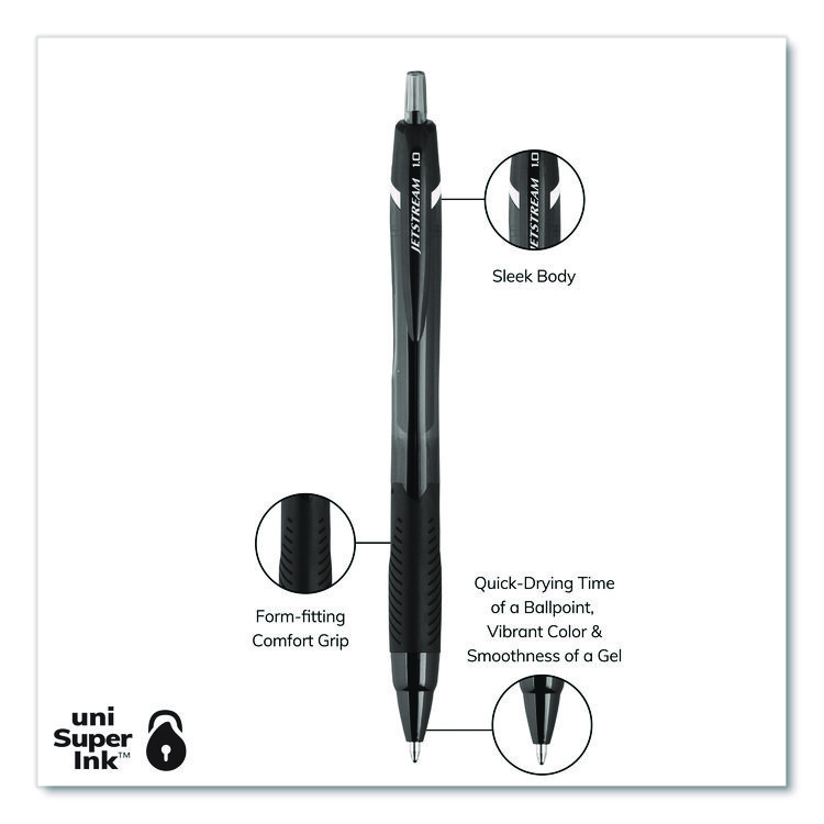 uniball Signo Gel Pen, Retractable, Medium 0.7 mm, Black Ink, Silver/Black Barrel, Dozen (UBC65940)