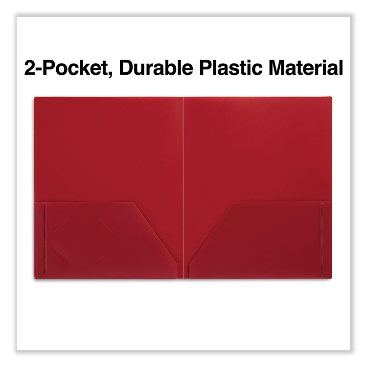 Universal Two-Pocket Plastic Folders, 100-Sheet Capacity, 11 x 8.5, Red, 10/Pack (UNV20543)