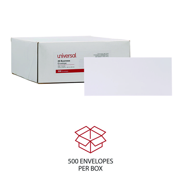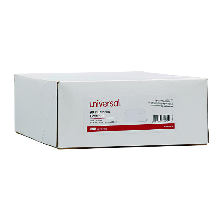 Universal Open-Side Business Envelope, #9, Square Flap, Gummed Closure, 3.88 x 8.88, White, 500/Box (UNV35209)