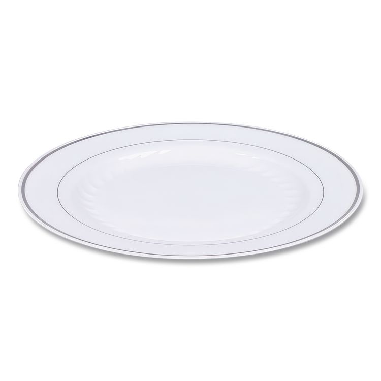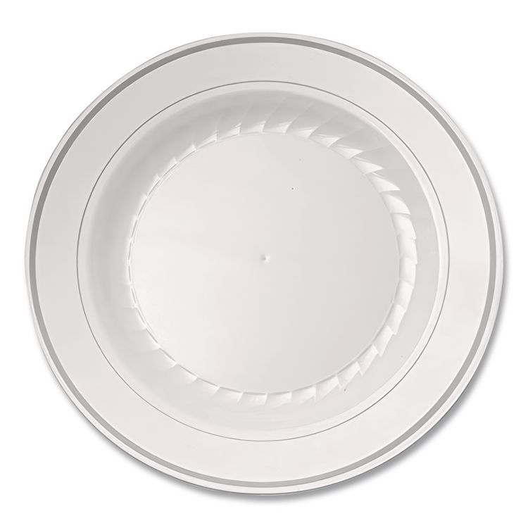 WNA Masterpiece Plastic Plates, 10.25″ dia, White/Silver, 10/Pack, 12 Packs/Carton (WNARSM101210WS)
