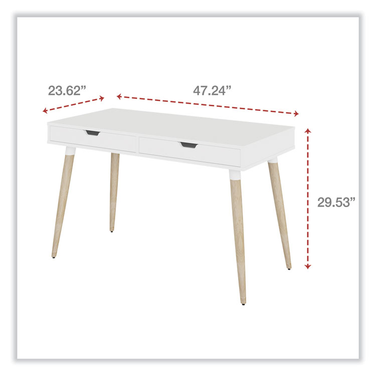 Workspace by Alera Scandinavian Writing Desk, 47.24″ x 23.62″ x 29.53″, White/Beigewood (ALEWSS4824WB)
