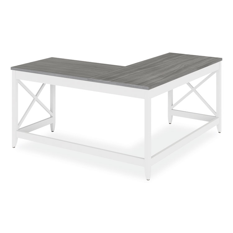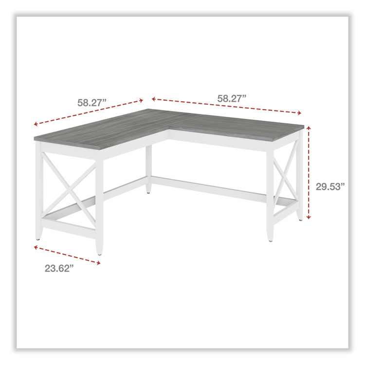 Workspace by Alera L-Shaped Farmhouse Desk, 58.27″ x 58.27″ x 29.53″, Gray/White (ALEWSF5959GY)
