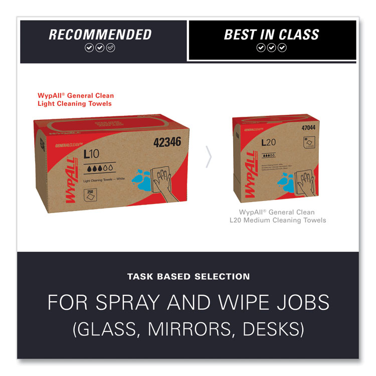 WypAll L10 Towels, POP-UP Box, 1-Ply, 10.25 x 9, White, 250/Box, 24 Boxes/Carton (KCC42346)
