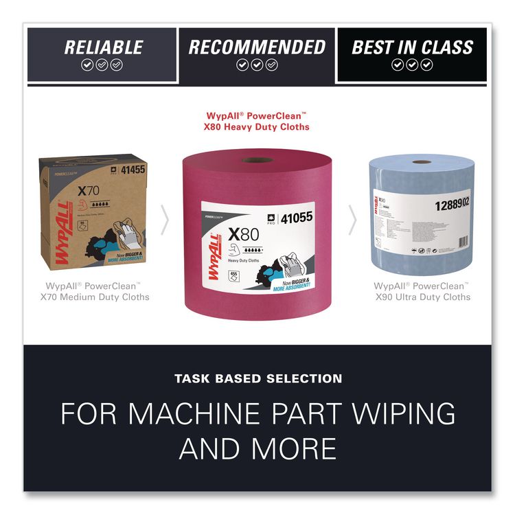 WypAll Power Clean X80 Heavy Duty Cloths, Jumbo Roll, Perforated,12.4 x 12.2, Red, 455 Wipers/Roll (KCC41055)
