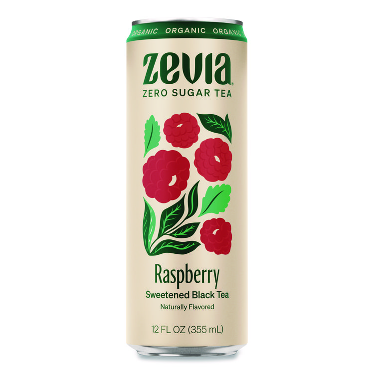 Zevia Zero Sugar Naturally Sweetened Black Tea, Raspberry Black Tea, 12 oz can, 12/Carton (ZEV0170312)