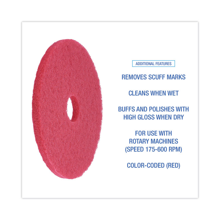 Boardwalk Buffing Floor Pads, 17″ Diameter, Red, 5/Carton (BWK4017RED)