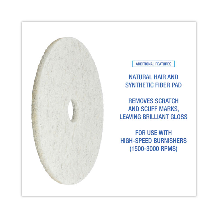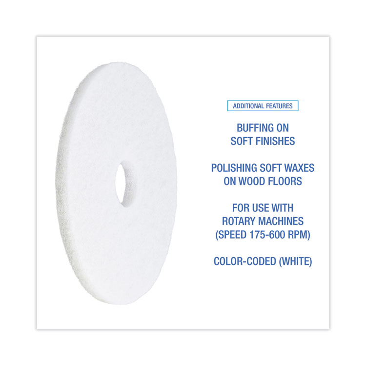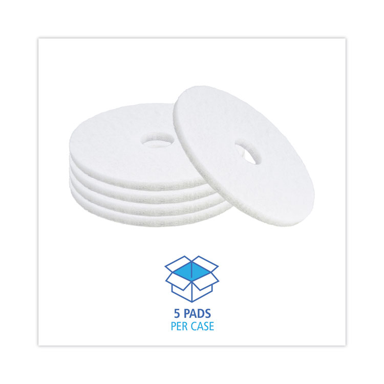 Boardwalk Polishing Floor Pads, 19″ Diameter, White, 5/Carton (BWK4019WHI)