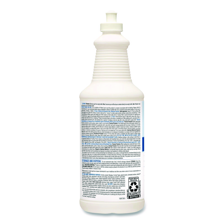 Clorox Healthcare Bleach Germicidal Cleaner, 32 oz Pull-Top Bottle, 6/Carton (CLO68832)